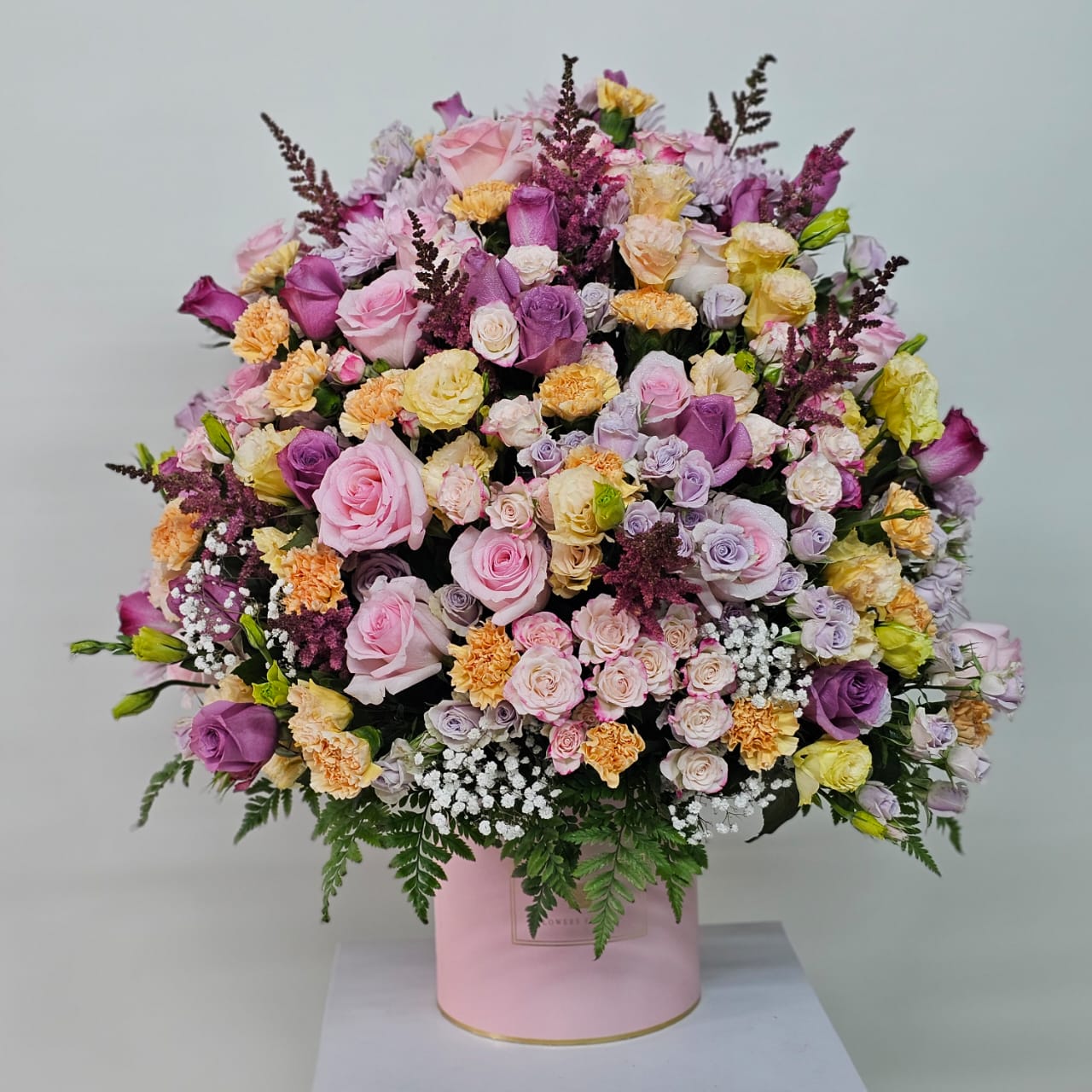 Flower Type: Fresh mixed flowers (Roses, Baby Roses, Lisianthus, carnations, Chrysanthemums & fillers)