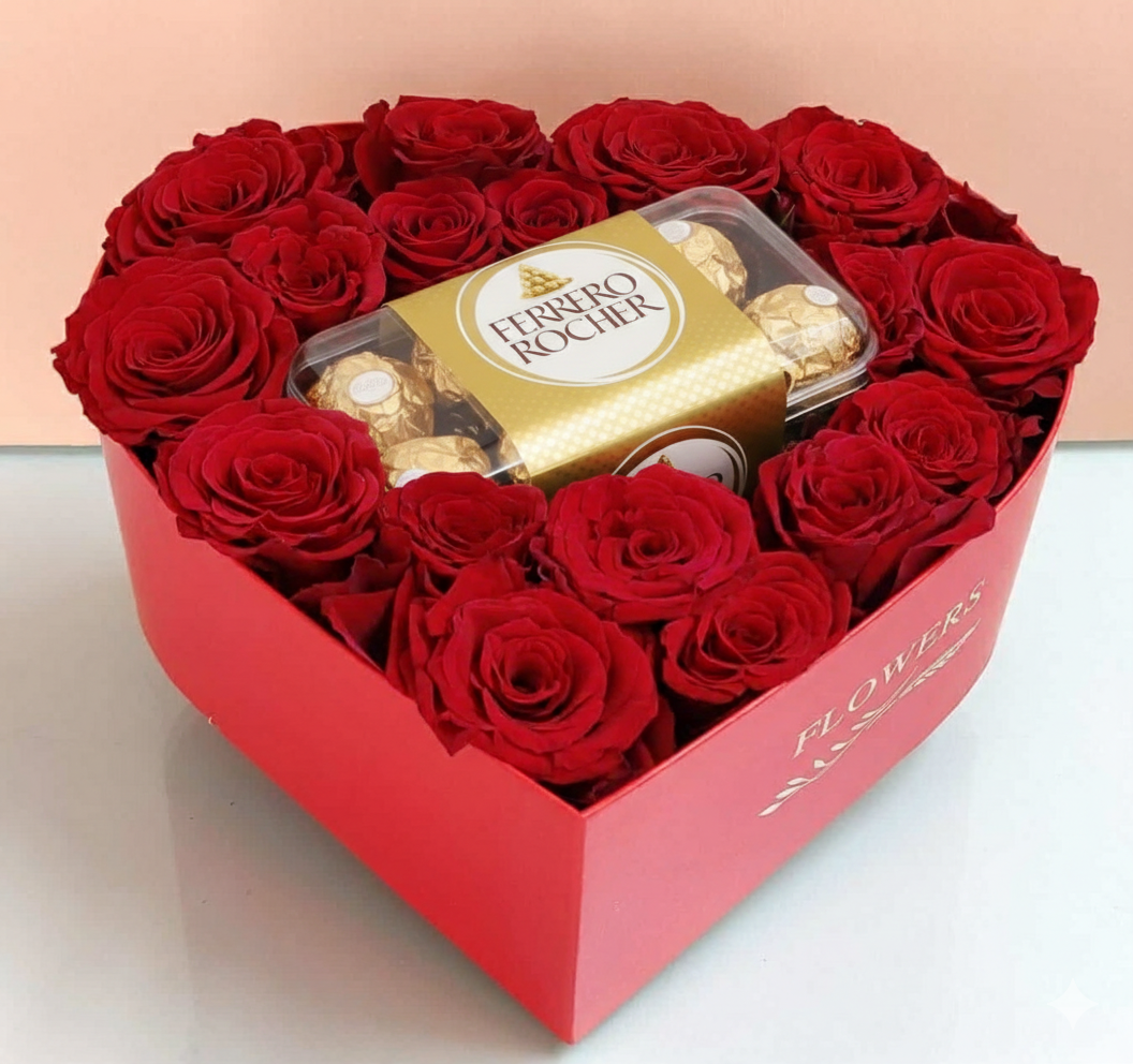Add a little romance to your love story with this lovely bouquet of alluring red roses. It is a wonderful gift that will certainly grace your special moment with them. Speak from your heart with this gorgeous bundle of 15 red roses Patchi in a heart shaped box arrangement from the best florist in Dubai. It is the ideal Valentine's Day gift for expressing your undying love and saying "I love you" to your companion. Simply go beyond the boundaries to see that sweet smile on their face. So, get the gift immediately at the best available price and let it speak for you. We can provide free delivery in Dubai.